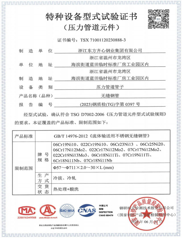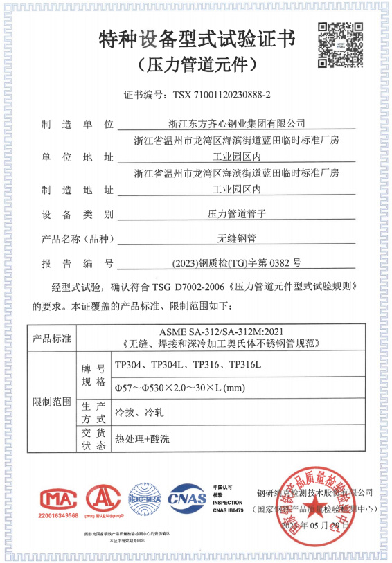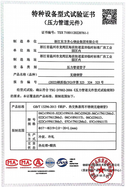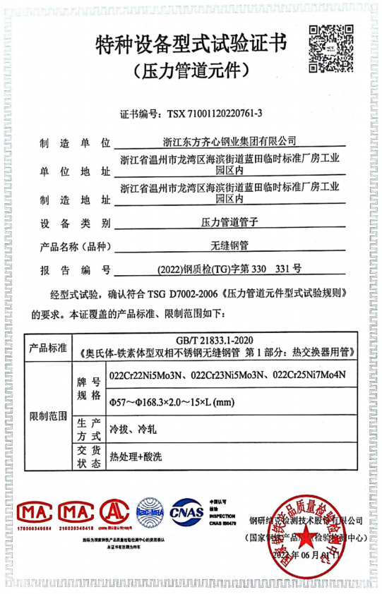 浙江東方齊心以不銹鋼系列產(chǎn)品為主導(dǎo),品種有不銹鋼管、奧氏體不銹鋼管、高溫合金鋼管、雙相不銹鋼管、鎳基合金管、冷凝器用管、U形管、核電管、不銹鋼管件、法蘭、閥門(mén)等。規(guī)格有6-2020x0.8-60mm,Ф16-25長(zhǎng)度可達(dá)33m。公司擁有精密制造鋼管的各類(lèi)機(jī)械設(shè)備25臺(tái)(套),其中各類(lèi)冷軋管機(jī)15臺(tái), 冷拔機(jī)10臺(tái),天然氣熱處理爐2套。